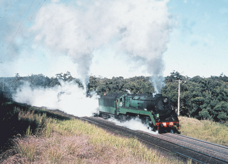 She was the only class 38 to stay green all her working life. A favourite of C.M.E. "Con" Cardew, she was selected for display at the Centenary in 1955 with a new coat of green paint whilst the other 38's were being painted black for the first time. By 1961, when she was due for overhaul again, it was decided to keep her green for special workings - and that's why she stayed green. She worked to Port Augusta with No 3801 on the first "Steam across Australia" in September 1970 and was destroyed by "Shirley" when in for overhaul in 1973.