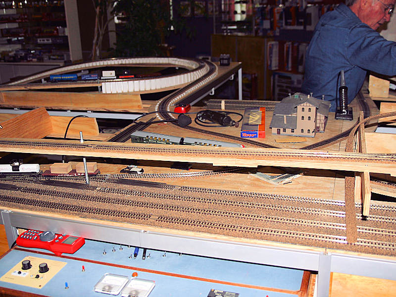 1. Laying the first level of track completely on the base board.