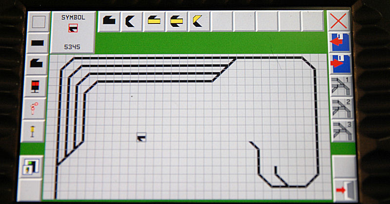 Photo 4 - You have a railway, you need a track diagram. This screen, along with the touch components and the mouse button are used to enter in the track plan. Here it is being drawn, with a piece selected. Lots and lots of symbols are available.