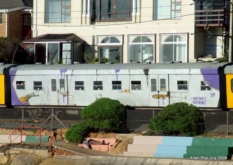 Did you say months?? I wonder how often trains go through the 'buffer'. I would have thought that a whole car piece would be taken out of service rather quickly. Then again they are not stainless steel Budd type cars where the 'art' can be cleaned off. In this case and cases like it would the car require a whole new paint job? Those holiday flats behind have such splendid views!!