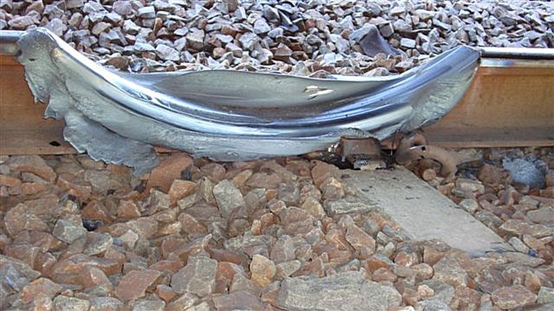 (2) If one set of driver wheels on the loco was doing a wheel spin, the rail below the set of wheels would endure continuous friction at the contact point, while the driver wheel itself has the friction & heat spread around the wheel's circumference - might help explain the one-way results a bit. I also imagine that the driver motor and wheels as a group lower themselves automatically as the rails melted away, causing further damage ... again the experts have to give their views.