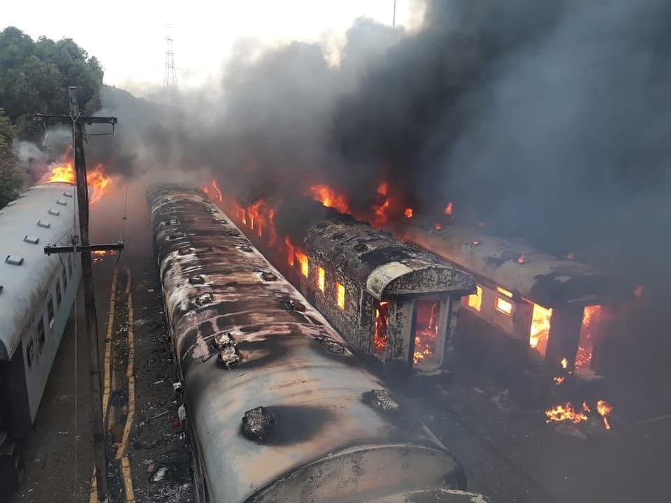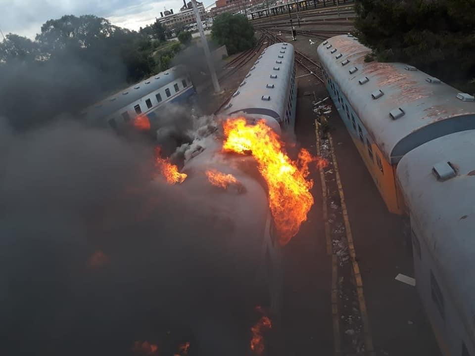 Watch: Train arson attack destroys 24 carriages at Bloemfontein station (video)