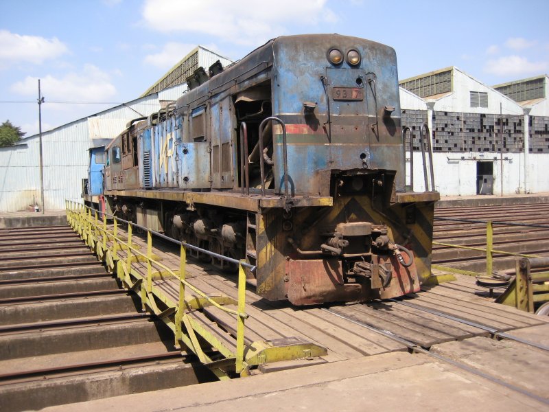A pair of diesels on the traverser in the RVR workshop in Nairobi