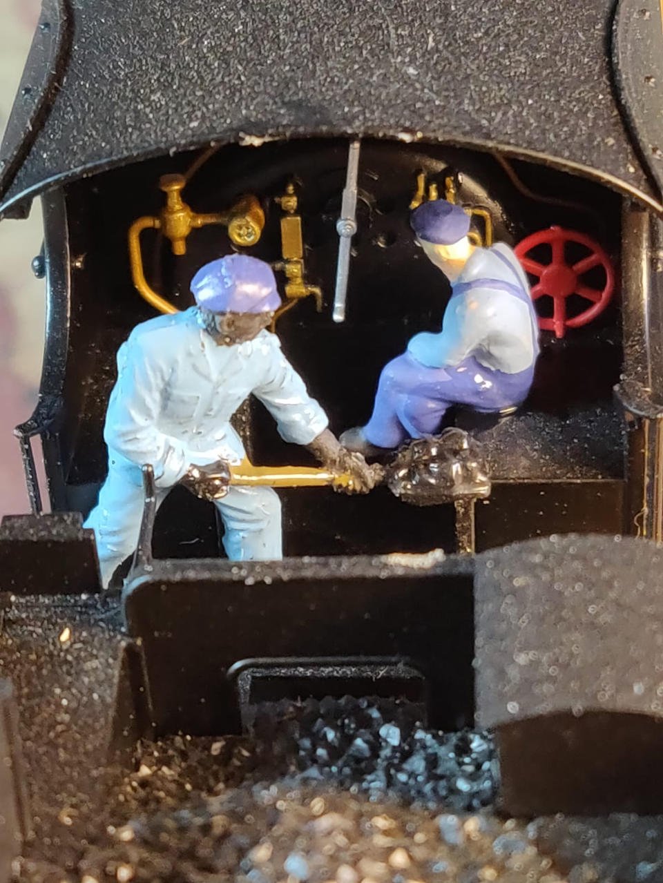 The driver was created by taking the head of a Sikh soldier and sticking it onto a standard footplate crew figure.