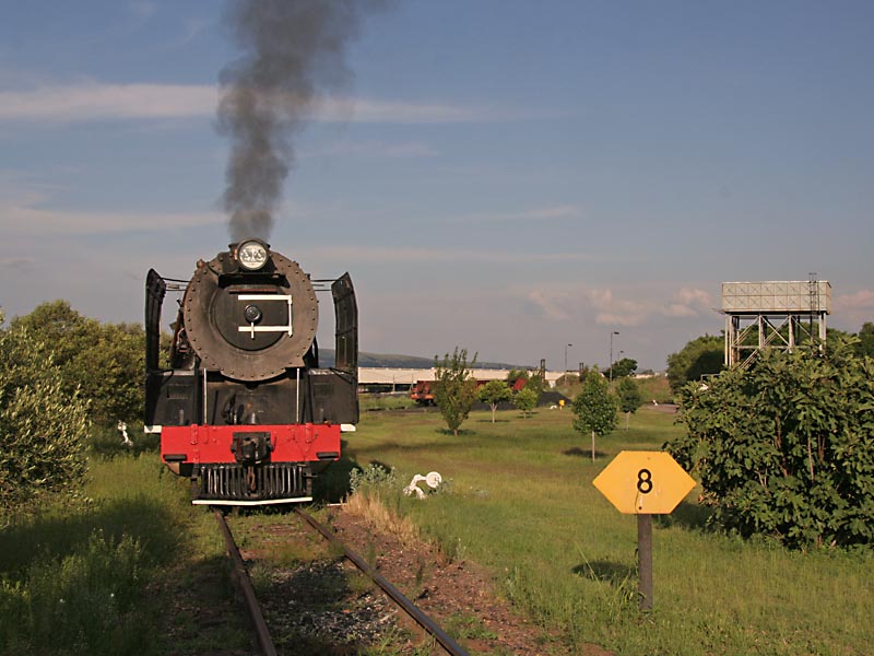 The run back is uneventful, except for sticking brakes on the coach which Trainman had forgotten to take off, the problem being cured at Villieria. At Capital Park we run past all makes of electrics and diesels, and at the western end there is a shriek of whistles as No 3664 comes flying by with our return train from Cullinan to Hercules. For a brief magic moment it seems we are back on the steam railway of old!