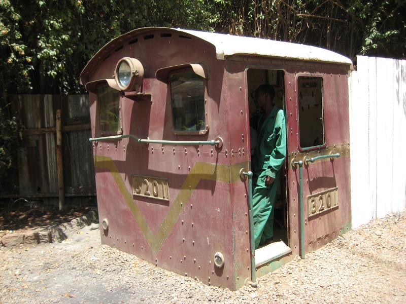 Today Jane and I went for lunch at the Talisman restaurant in the posh Karen suburb of Nairobi. As you can imagine, spending the afternoon lazing under old trees in the beautiful garden of an upmarket restaurant whilst eating fine food was a great sacrifice for us, but one that we bore willingly in order to be able to provide to the FOTR forum these two photos of a defunct class 32 cab being used as a gatekeeper's hut...